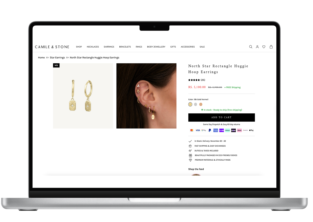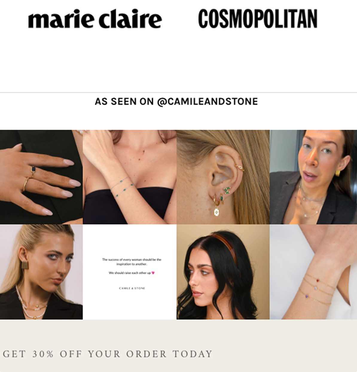 Camile & Stone is a fast-growing contemporary jewellery brand offering premium 18k vermeil and moissanite pieces without the luxury markup. With over 350,000+ happy customers, the brand is built on affordable luxury, meaningful gifting, and a strong influencer-driven social presence.