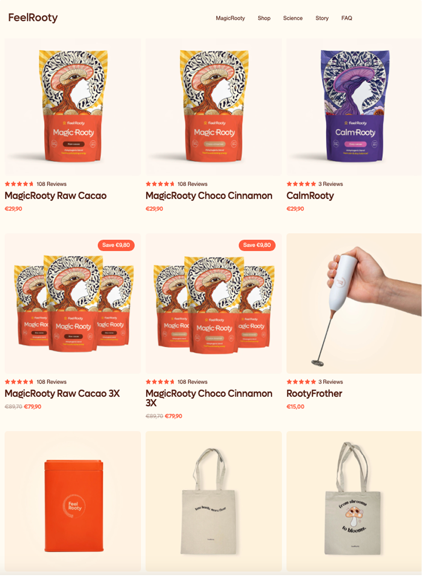 FeelRooty is a next-generation wellness brand creating mushroom-based adaptogenic beverages designed for focus, energy, and long-term well-being. Their visual identity is bold, organic, and storytelling-rich. FeelRooty partnered with CloveCode to rebuild their Shopify experience from the ground up.